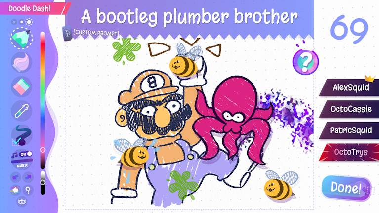 Boogers, Bombs, Bird Plop, Bees, and the almighty OctoSquid are all items that you and your friends will use to sabotage each other's drawings! - Watch out!