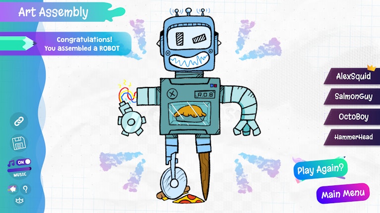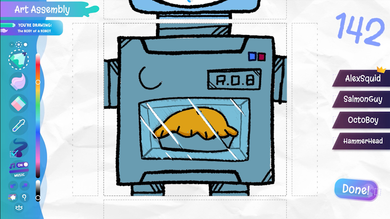 Don't forget Art Assembly! Artists assemble! Work together as a team to create the ultimate being as each player draws a different body part. You can also create your "masterpiece" solo. At the end of the round your creation is assembled before your feeble mortal eyes!