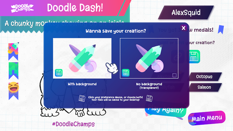 Saving your art! - in Doodle Champs you can save your art straight to your device. You can choose to save with or without a background.
